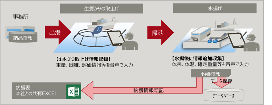 タブレットは操船室などの濡れない場所に置き、担当者はヘッドセットから音声で情報入力。両手が自由に使え(ハンズフリー)、目線も切れない(アイズフリー)ことで作業の効率化と安全性の向上に寄与。