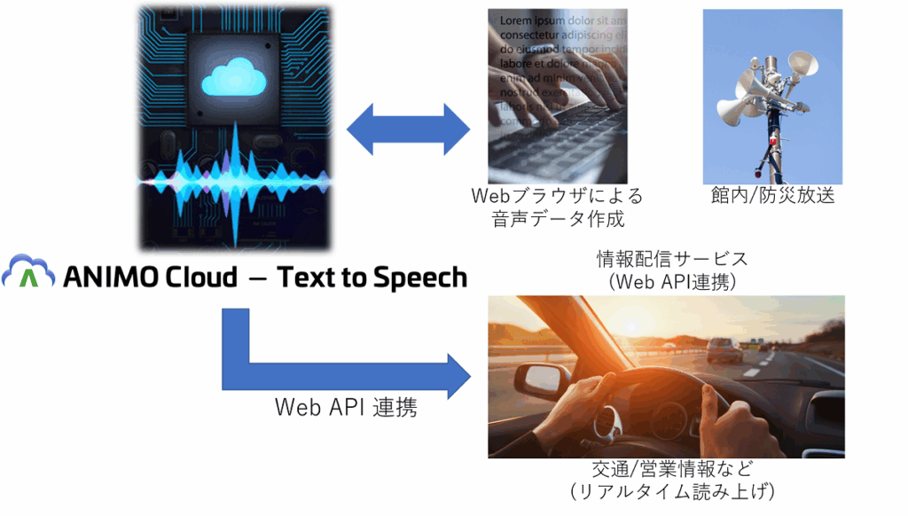 「ANIMO Cloud – Text to Speech」は、Webブラウザ上でテキストを入力するだけで、いつでも素早く音声ファイルが作成できる音声合成クラウドサービスです。