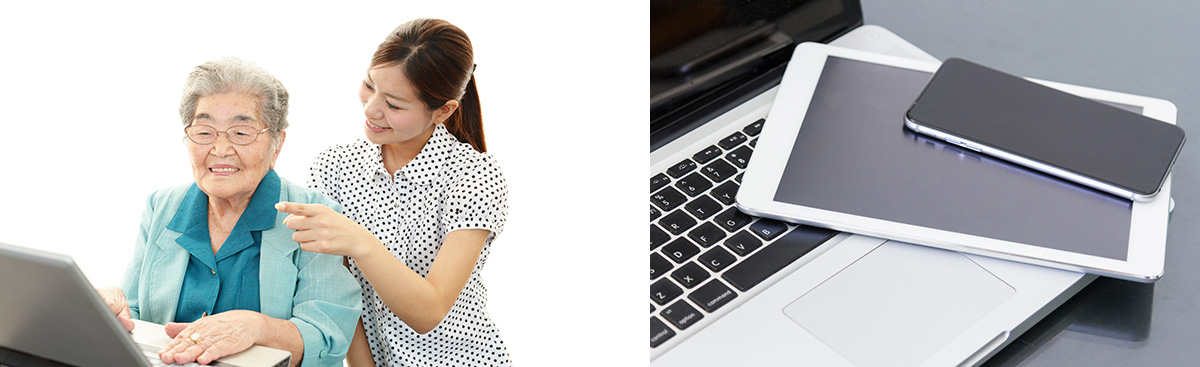 - インターネット接続できるパソコン、タブレット、スマートフォンがあれば、いつでも、どこでも訓練をご利用いただけます。
