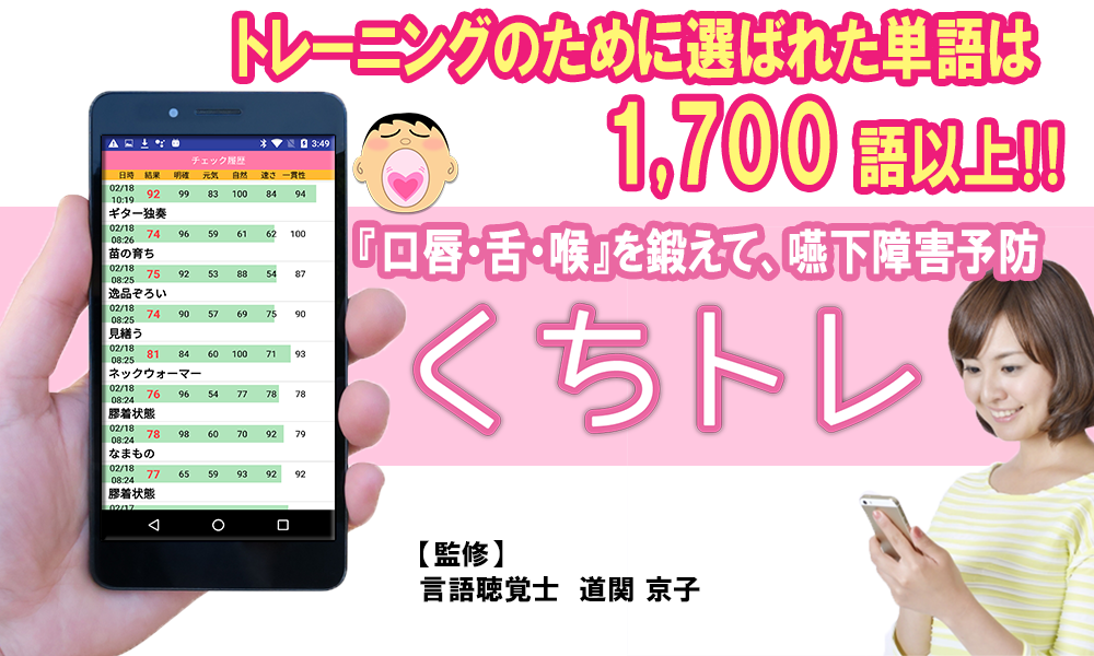 「くちトレ®」Webサービスは、「口唇・舌・喉」を鍛えて、滑舌・嚥下の改善に役立てる事ができます。